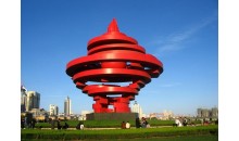 該雕塑以青島作為“五四運(yùn)動(dòng)”的導(dǎo)火索這一主題充分展示了島城的歷史足跡,深涵著摧人向上的濃厚意蘊(yùn)。雕塑取材于鋼板,并輔以火紅色的外層噴涂,其造型采用螺旋向上的鋼板結(jié)構(gòu)組合,以洗練的手法、簡(jiǎn)潔的線(xiàn)條和厚重的質(zhì)感,表現(xiàn)出騰空而起的“勁風(fēng)”形象,給人以“力”的震撼。