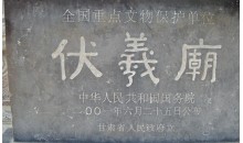 伏羲廟本名太昊宮,俗稱人宗廟,在甘肅省天水市城區西關伏羲路。一九六三年人民政府公布為甘肅省重點文物保護單位。伏羲廟臨街而建,院落重重相套,四進四院,宏闊幽深。廟內古建筑包括戲樓、牌坊、大門、儀門、先天殿、太極殿、鐘樓、鼓樓、來鶴廳共10座;新建筑有朝房、碑廊、展覽廳等共6座。新舊建筑共計76間。整個建筑群坐北朝南。牌坊、大門、儀門、先天殿、太極殿沿縱軸線依次排列,層層推進,莊嚴雄偉。