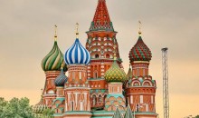 圣瓦西里大教堂(華西里·伯拉仁內教堂)位于俄羅斯首都莫斯科市中心的紅場南端,緊傍克里姆林宮。由俄羅斯建筑師巴爾馬和波斯特尼克根據(jù)沙皇和伊凡大公的命令主持修建,于1560年建成。教堂的名字根據(jù)當時伊凡大帝非常信賴的一位修道士瓦西里的名字而取。中央的塔高65米,共有九個金色洋蔥頭狀的教堂頂。這九個教堂頂不是一開始就有,而是后來分別加上去的