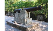 赤灣古炮臺位于廣東省深圳市南山區蛇口半島的深圳鷹嘴山頂端,分東、西兩側箝制赤灣港,雄視伶仃洋面。現為深圳市文物保護單位。赤灣古炮臺位于“臨海山梁扼三面之險”的蛇口半島頂端,分東、西兩側箝制赤灣港,雄視伶仃洋面。已修復的左炮臺挺立在海撥170米的鷹嘴山頭,占地面積約360平方米。炮臺城基用大塊花崗巖修砌,全高約3米多,北面是炮臺城的入口,城內東西兩廂,仍遺留兩座房屋殘基,是當年守炮臺士兵的居屋。