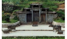 鮮于璜墓位于天津城北武清縣高村鄉蘭城村東南。鮮于璜在東漢安帝初年任雁門太守,食俸2000石,死于安帝延光四年(125),終年81歲。其墓早年被盜,1977年發掘時,尸骨和隨葬品均凌亂。墓為中型磚室墓,通長14.7米。雖曾被盜,但發掘時仍獲銅、玉、石、陶等隨葬品70多件,有不少罕見珍品。有一件通高85厘米的陶倉,準確塑出建筑結構和扛糧入倉的人物。