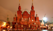 俄羅斯國(guó)家歷史博物館(The State Historical Museum)位于俄羅斯莫斯科紅場(chǎng)北側(cè)的馬涅什廣場(chǎng)上,是一座建筑造型非常美麗且極具新俄羅斯風(fēng)格的朱紅色建筑物;在主體建筑物的兩側(cè)各有一座高聳對(duì)稱的塔樓,還有裝飾性的尖塔、三角檐與圓拱型窗戶。