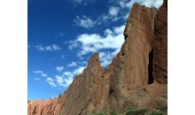 維吾爾語“克孜利亞”是“紅色的山崖”之意。神秘的“天山大峽谷”是天山支脈克孜利亞山中的一條峽谷,紅褐色巖石經過大自然億萬年的風刻雨蝕之下,才形成由現在“天山大峽谷”。“天山大峽谷”紅褐色的山體群直插云天,在陽光照射下,猶如一簇簇燃燒的火焰。“天山大峽谷”的迷人之處,不僅僅在于它的雄奇、險峻,而在于它的幽深、寧靜和神秘。
