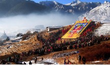 甘丹寺(藏文: 威利: Dga'-ldan; 藏文拼音: Gandain),位于拉薩達(dá)孜縣境內(nèi)拉薩河南岸海拔3800米的旺波日山上,距拉薩57公里。是黃教六大寺中地位最特殊的一座寺廟,它是由佛教格魯派的創(chuàng)始人宗喀巴于1409年親自籌建的,可以說是格魯派的祖寺,與哲蚌寺、色拉寺合稱拉薩“三大寺”,清世宗曾賜名為永壽寺。寺院全稱“甘丹朗杰林”,甘丹是藏語音譯,其意為“兜率天”,這是未來佛彌勒所教化的世界。宗喀巴的法座繼承人,歷世格魯派教主甘丹赤巴即居于此寺。