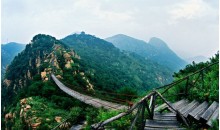 云峰山巖石嶙峋,峰高、谷幽、林茂,景色如畫。春來,蒼松滴翠,百花吐艷;初夏,刺槐花開,皚皚雪白;秋日,松濤波涌,霜染楓紅。“春桃”、“夏槐”、“秋楓”為三時絕景。云峰山名勝古跡眾多,自山麓至山頂,分布歷代刻石37處,聞名于海內外的北魏光州刺史、著名書法家鄭道昭于公元511年,在此山留下了寶貴題刻17處,均刻在山內險峻的摩崖之上。