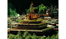 拉卜楞寺西南角,由三世貢唐倉?貢曲乎丹貝仲美大師建成于1805年,原名現見解脫大金塔,因塔內供有從尼泊爾迎請來的無量光佛(阿彌陀佛)像而享譽海內外,寶塔造型別致,工藝精巧,在建筑藝術與宗教意義上達到了完美神圣之境界。現存寶塔由六世貢唐倉?丹貝旺旭大師為丕振宗風,宏教利民,而于1991年2月8日在原寶塔遺址舉行凈地儀軌,主持籌建。