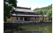 阿育王寺是我國現存唯一以阿育王命名的千年古剎。其地在今寧波市東20公里,鄞縣五鄉鎮寶幢。寺之座落方位,在鄮山分支育王山之西麓。面對玉幾山,左界育王嶺,右是赤瑩山峽谷。三山擁處,吉林參天,修竹蔽日。西望古剎,寺在山奧之底,南而遠眺,俱在峰巒之中,有世外桃源之感。加之四周翠崗蜿蜒,群陵起伏,稱之為“六殊勝八吉樣地”實非虛言。