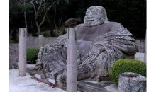 彌勒造像位于瑞巖寺右側(cè),又稱"仁佛".為元至正元年(1341年),本縣人呂伯恭之杰作。及依整塊巖石自然形態(tài),就地鑿成。像高6.4米、寬8.9米、存約8米許,頭部高2.3米、頭頂寬1.8米、耳長1.3米、嘴寬1.1米、肩寬1.6米。石像盤腿趺坐,袒 胸 露臍,左手捻珠,右手撫腹,兩眼平視,雙耳垂肩,笑容可掬,生動(dòng)逼真,形神兼?zhèn)洌蜩蛉缟?/p>