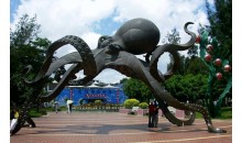 廈門海底世界占地17.5公頃,總建筑面積7500平方米。它是由新加坡華僑與鼓浪嶼風景區建設開發公司合作興建的,總投資1000萬美元。這座花壇簇擁的海藍色水晶宮建筑,第一期工程先后建成了海洋館、企鵝和淡水魚館。其入口處在主體建筑外60米地方有一個設計獨特、別具一格、張牙舞爪的章魚雕,高6米、跨徑11.2米。它是廈門海底世界的標志性建筑,也是游客們首先拍照留念的景觀。