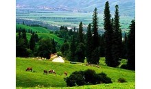 金絲特避暑山莊,位于新疆庫爾勒市和碩縣北紅山地帶那音克鄉(xiāng)的一個水草豐美的山間小盆地里。沿著崎嶇的山路前40公里左右,就可到達。這里草地如毯、牛羊成群、喇嘛調悠揚深遠;揚鞭縱馬,如入人間仙境。在這里,游人還可以盡情地感受到和碩特蒙古人古樸而濃烈的風情。一年一度的那達慕盛會更是熱鬧非凡,有醇香的奶酒、鮮美的手抓肉,還有古老悠揚的沙吾爾登彈唱,夏日有日吾爾賓館接待游人。